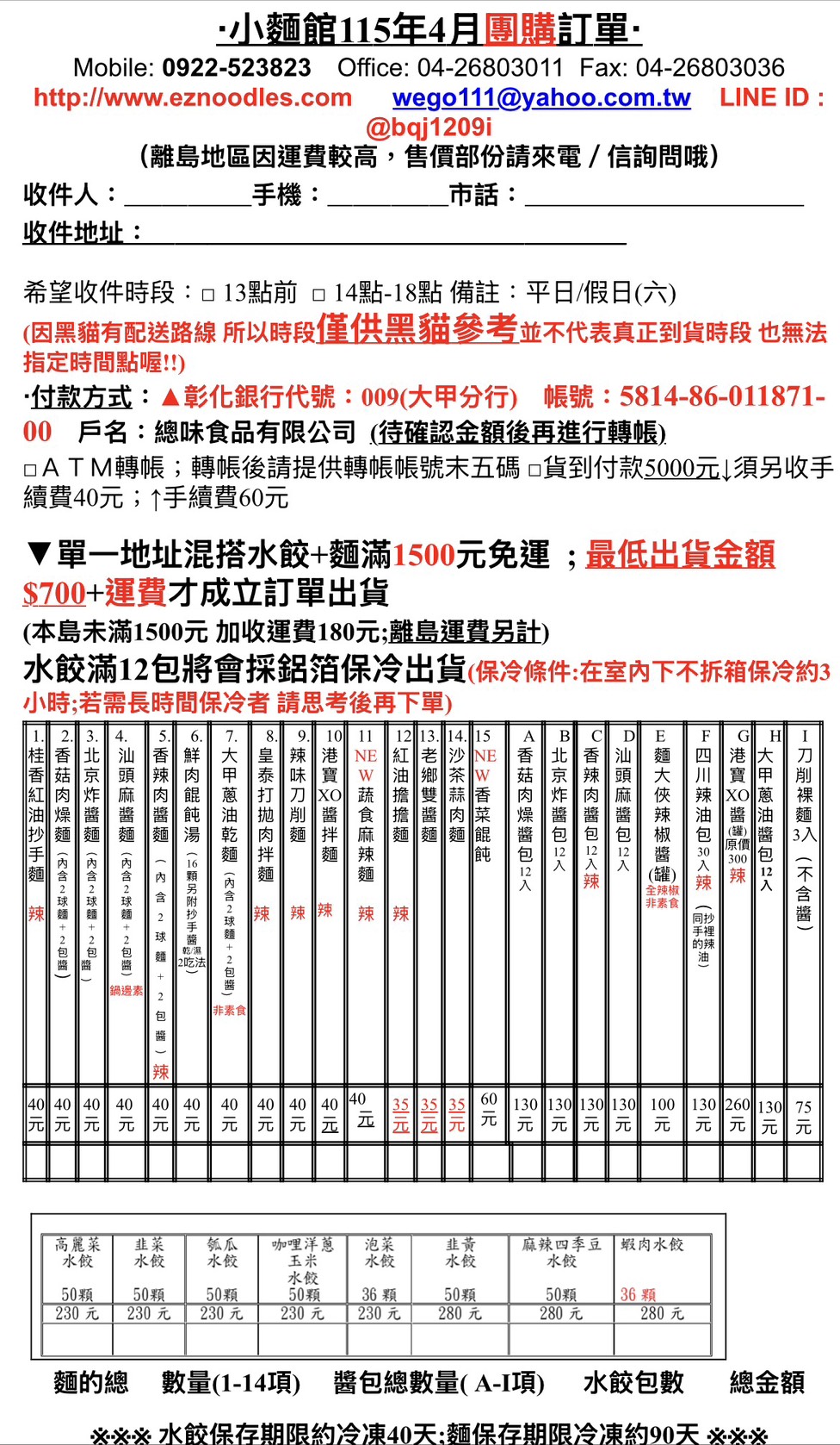 小麵館電話只有04-26803011和0922-523-823